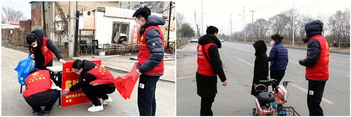 民主街道的工作人員為志愿者們及時送餐,保證大家吃上一口熱乎飯;工業(yè)公司黨支部為志愿者們準(zhǔn)備了手套、暖寶寶、口罩等物品,滿足大家御寒需要。