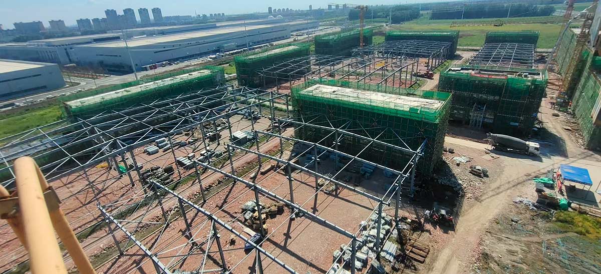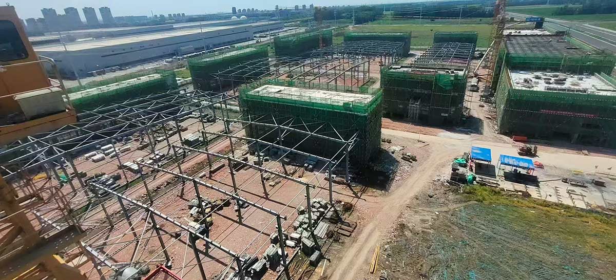 項目進展:園區(qū)全部廠房已主體封頂。